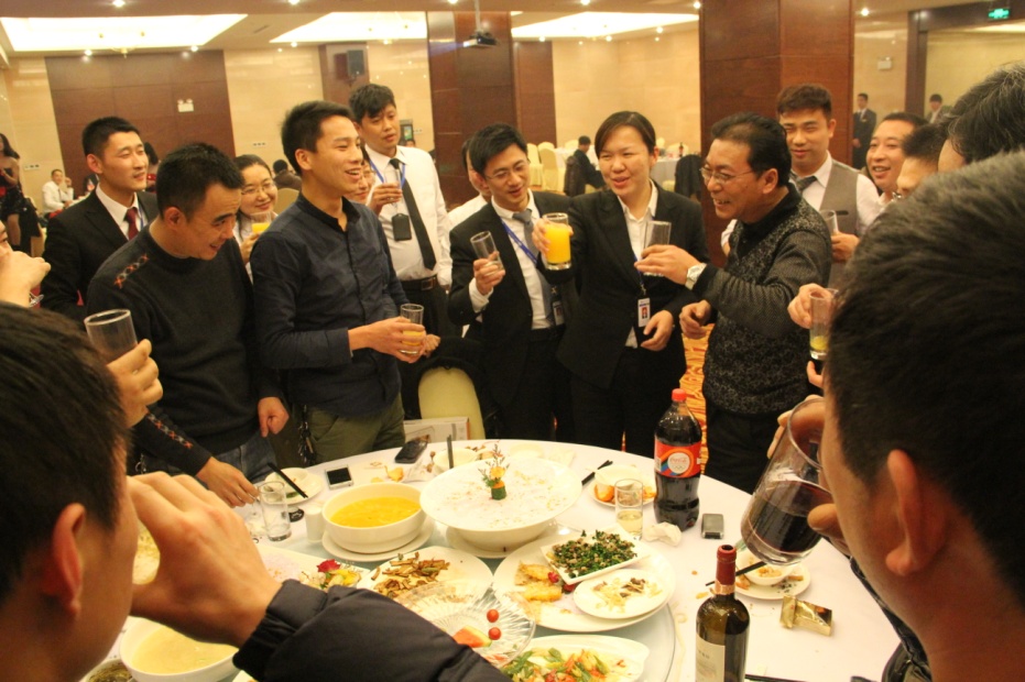 商管公司年会晚宴在天宫大酒店举办,全体员工齐聚一堂,公司不仅为大家准备了饕餮大餐,还穿插了激动人心的抽奖活动,轻松欢快的卡拉OK点歌、击鼓传花游戏。