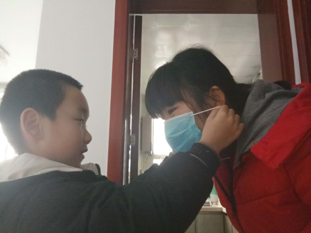 图 | 上班前,儿子为马静带好口罩