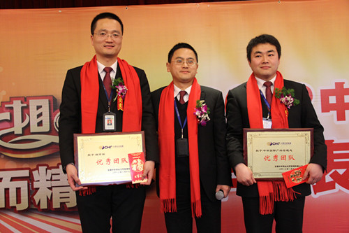 (集团公司总裁助理黄少铭颁发“优秀团队”奖)
