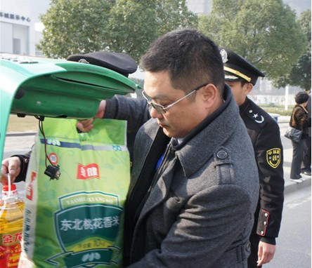 在“大爱星空体育网页版,星空体育(中国)官方网站登录界面•感动合肥”活动中,陈总为困难家庭将捐助的大米送上车。